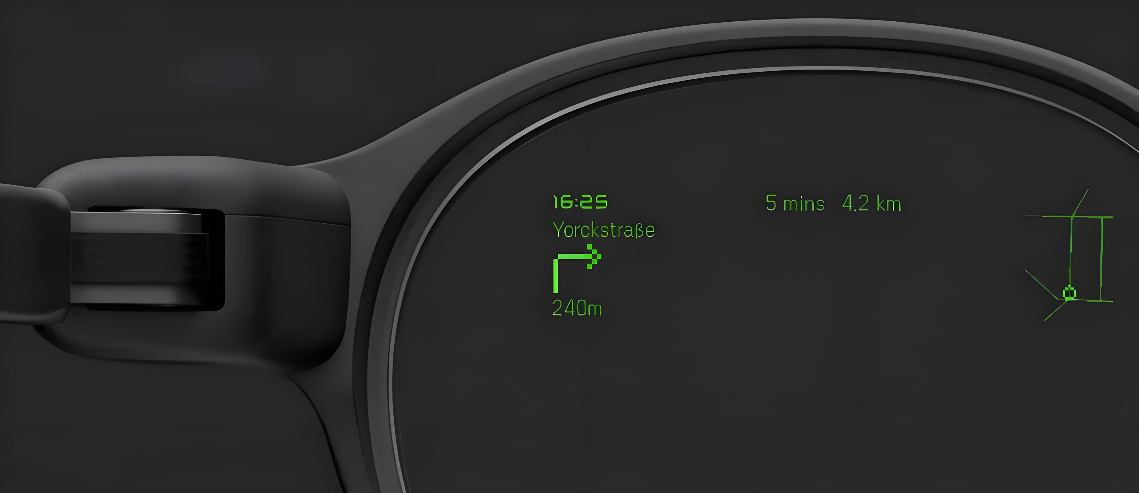 Micro-LED optical engines transmit content onto a pair of waveguide lenses, which then project it about two meters in front of you. It looks natural. Not in your way.
